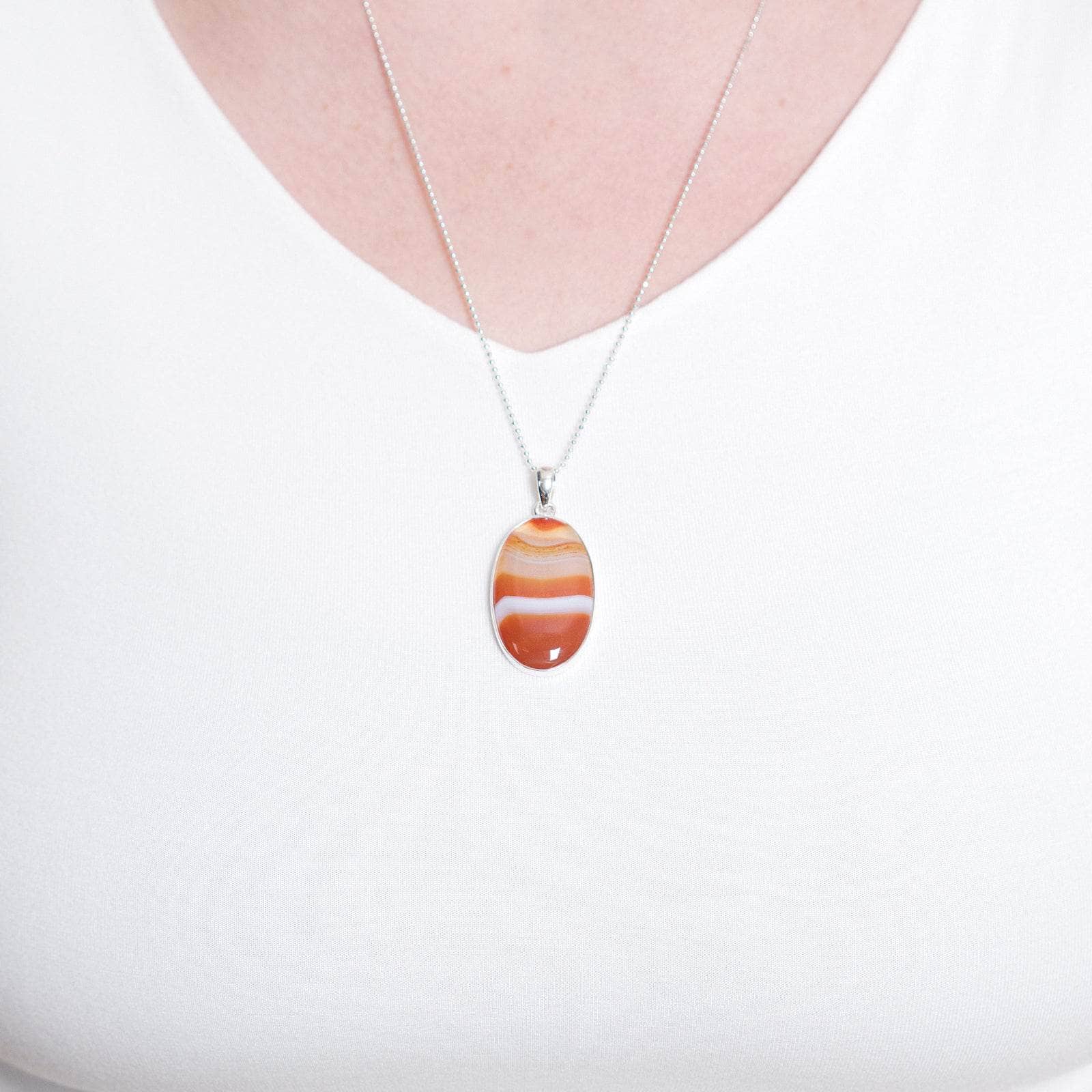 Carnelian Banded Agate Teardrop Pendant Necklace