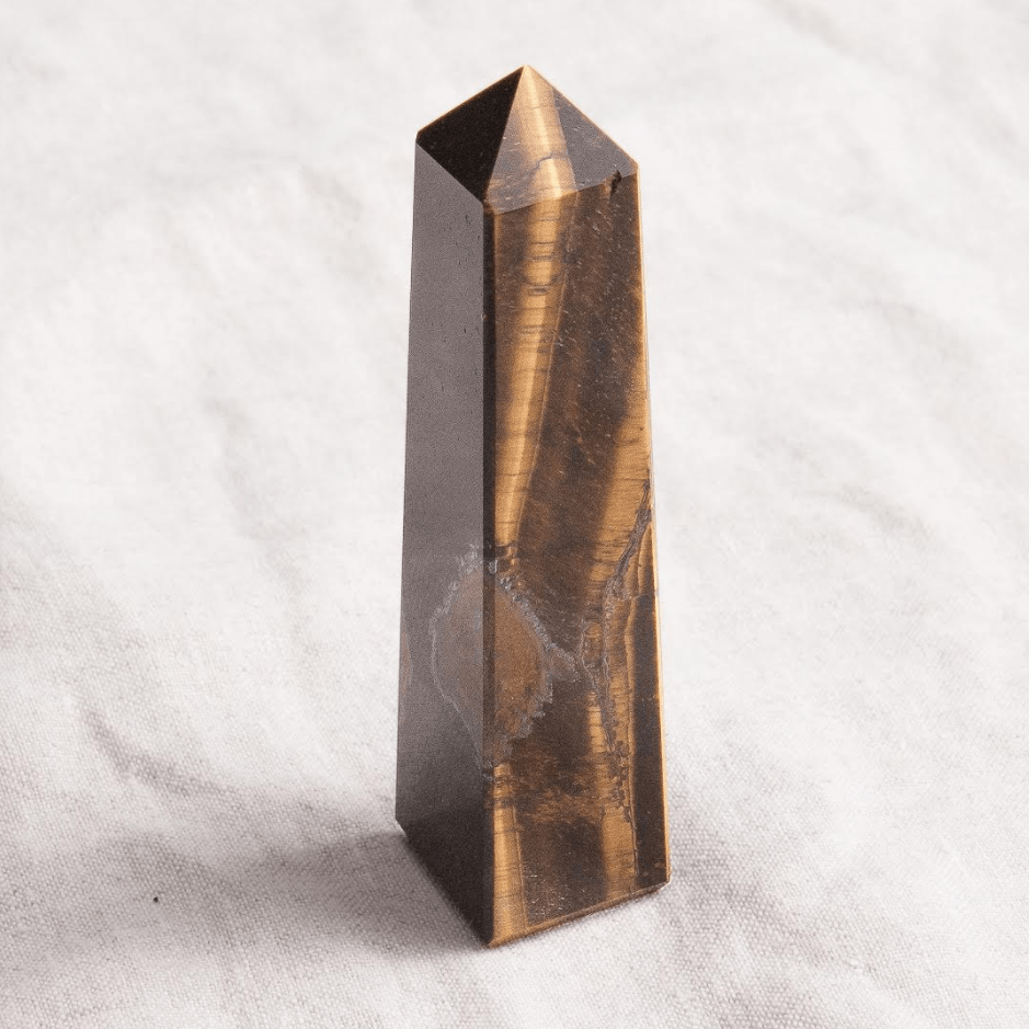 Regular price $58.00 USDSale price $58.00 USD Regular priceUnit price / perBring strength and power to your lower chakras and protect your space with the Tiger Eye Tower. Banded in cloak like shades of black and brilliant...