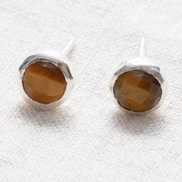 Tiger Eye Silver or Gold Stud Earrings