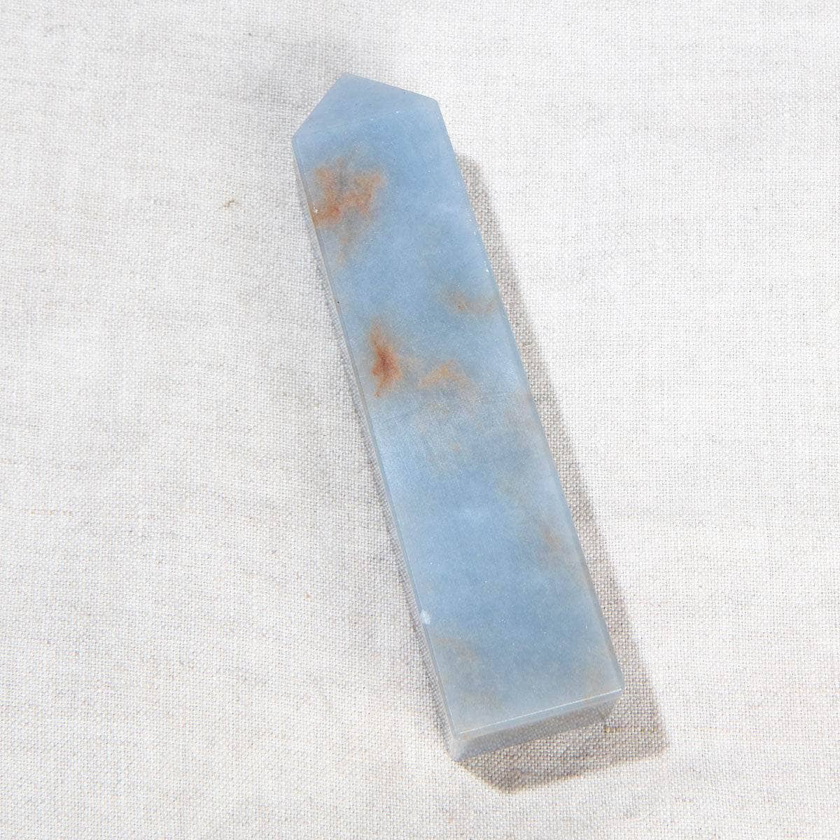 Let peace and serenity flow from the universe into your soul with the gentle radiant energy of the Angelite Tower. Standing tall, this beautiful tower works as your telephone with spirit guides, ethereal beings, and any messages that the universe wants to transmute to you.