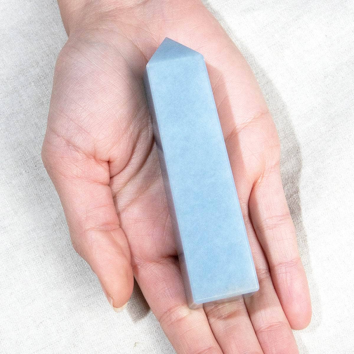 Crystal towers are one of the strongest ways you can call on healing in its sacred shape and form. The tower connects to the earth with a solid base before rising up to reach a pinnacle. This pinnacle can communicate directly with the universe and work to draw in the energy you need and release all that you don’t. When paired with Angelite’s powers of higher connection, this tower becomes an amazing asset to spiritual healing.