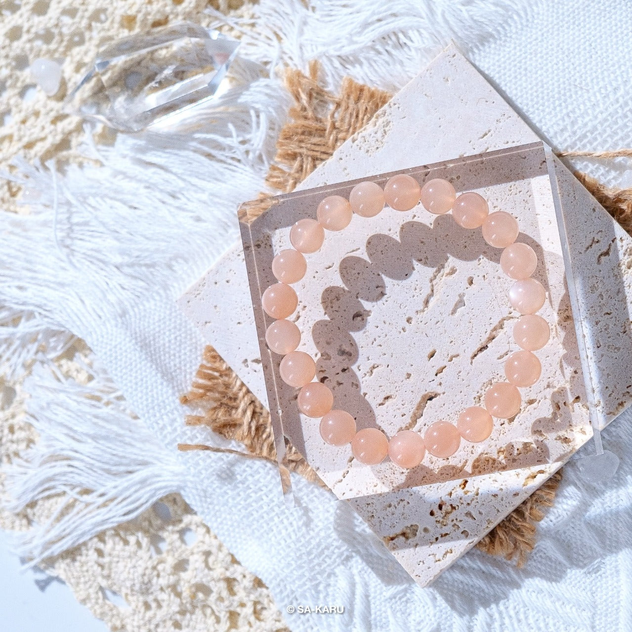 One of the most popular love stones, it is very fresh and pink in orange color, with translucent crystals revealing white moonlight, a touch of tenderness like water.
