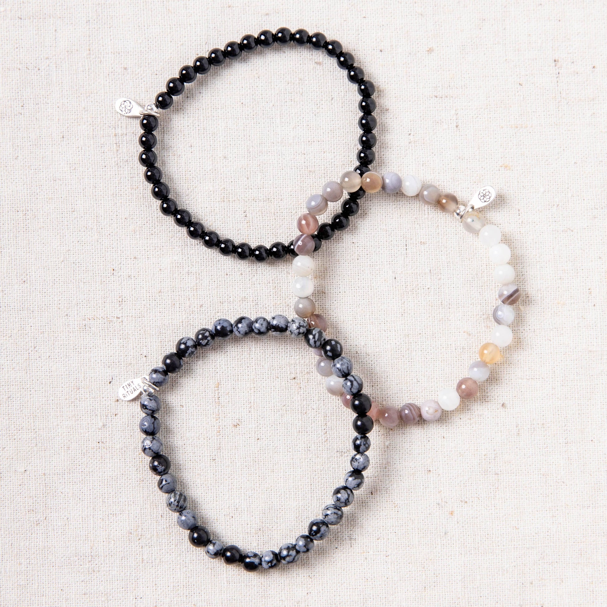 • Black Agate, Botswana Agate, Snowflake Obsidian